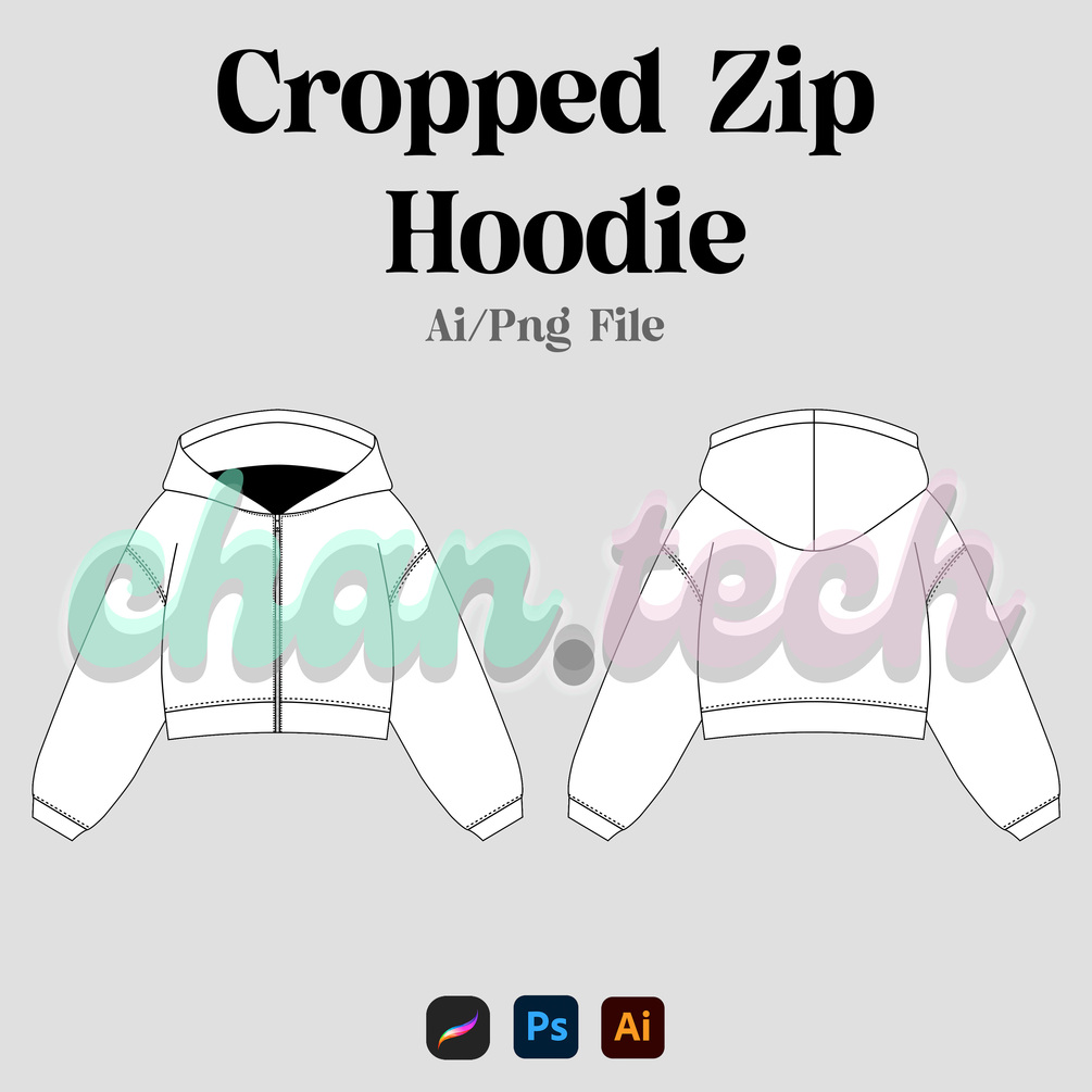 Cropped Zip Hoodie Mock Up / Tech Flat